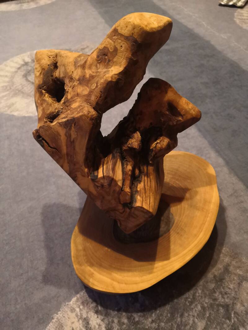 Racine sculptée, en olivier de Sicile, sur pied de noyer